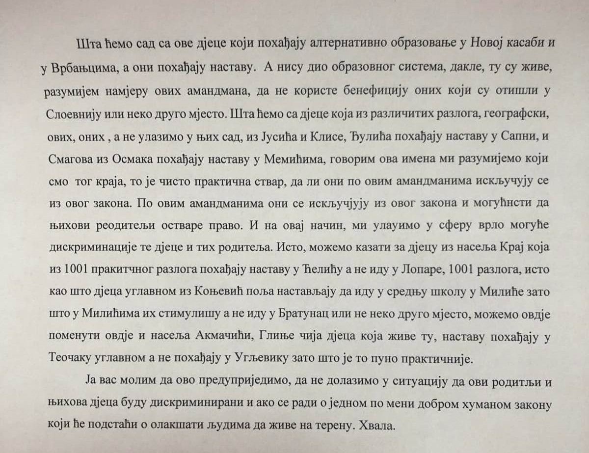 Naime, amandmanom Kluba poslanika SNSD-a predviđeno je da pravo na ovu naknadu imaju samo porodice čija djeca pohađaju obrazovni proces kojeg organizira Ministarstvo prosvjete u ovom entitetu. Kako djeca koja pohađaju isturena odjeljenja pohađaju fizički školu u ovom entitetu, ali izvan obrazovnog procesa ovog entiteta ona po ovom amandmanu ne bi mogla ostvariti ova prava.